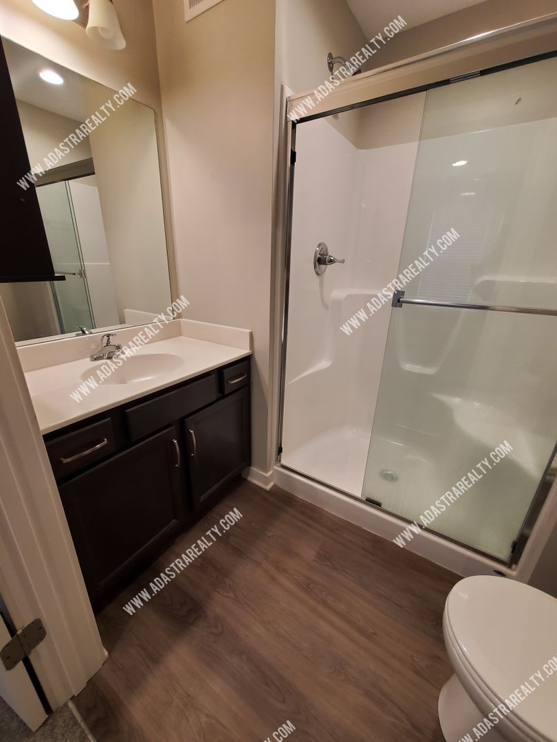 This gorgeous townhouse was just built and has everything you will need and want, everything is neutral gray color scheme. The kitchen includes quartz countertop and all appliances. The Master Bedroom is spacious with a sitting room. Bedroom level washer and dryer included but not warrantied! Be one of the first to occupy this beautiful town-home.